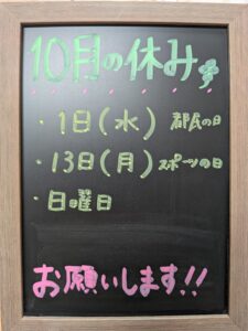 10月のお休みのお知らせです!